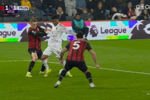 是点球吗?阿玛德禁区内倒地裁判没有表示,伯恩茅斯反击扳平