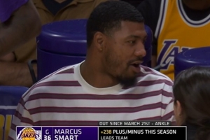 湖人VS雷霆,转播方晒斯玛特数据:本赛季他的总净胜分是+238,领跑全队。