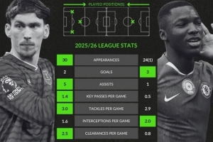 加纳vs凯塞多本赛季英超数据对比:加纳助攻、铲球等5项领先