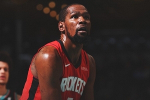 赛后火箭官方发布赢球海报,杜兰特成为封面人物。
